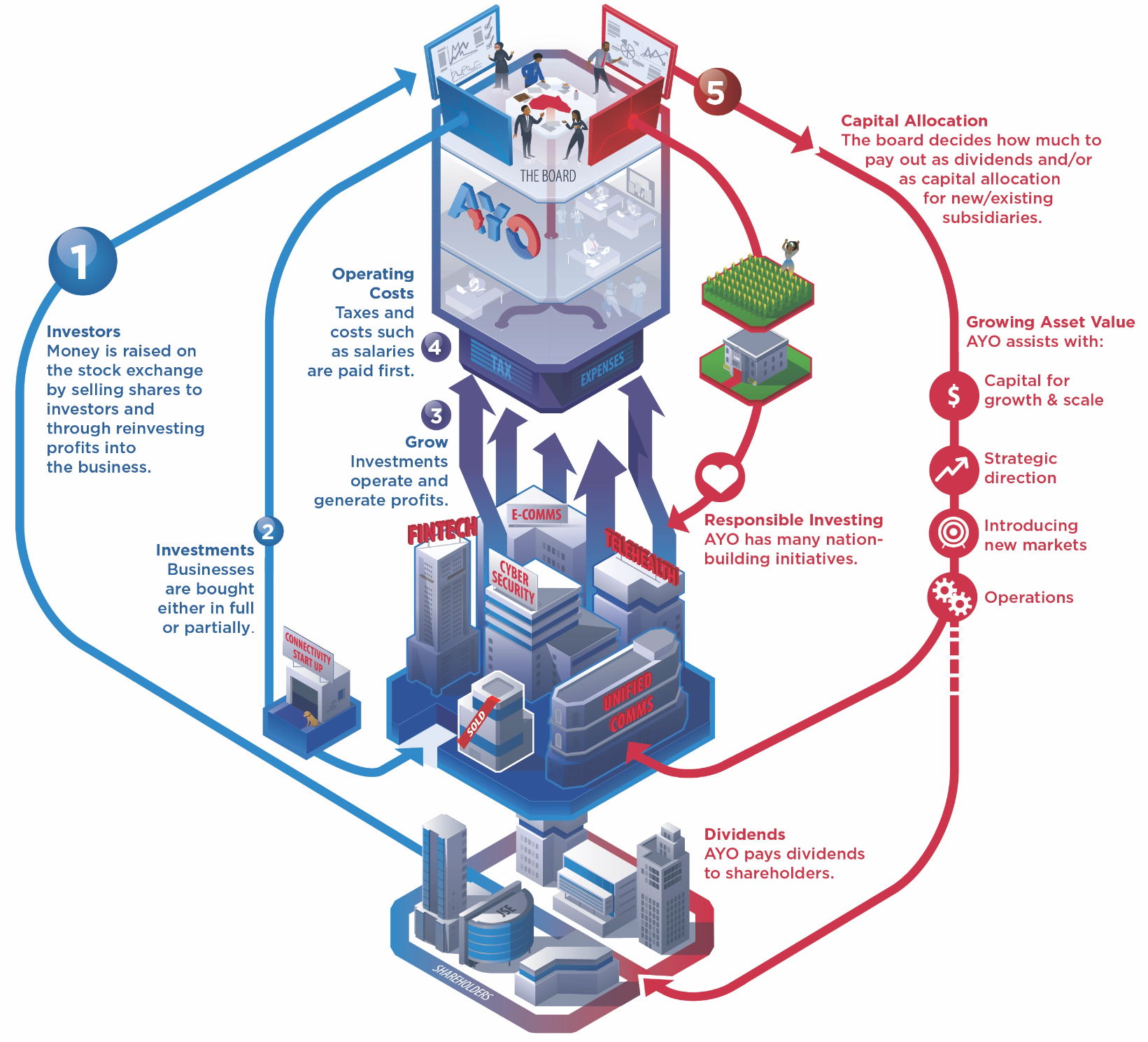 Investment holding companies do not manufacture anything. There are no products, services or selling to customers. How does money flow in our system and what value do we create?